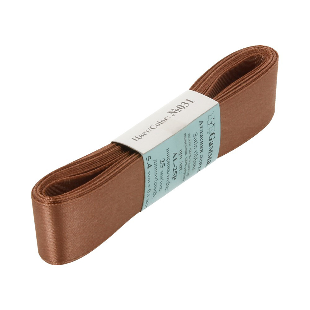 Лента атласная 25 мм ( 1 ") "Gamma" ФАСОВКА 5.4 м №031 т-коричневый