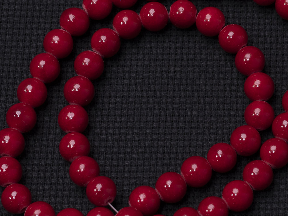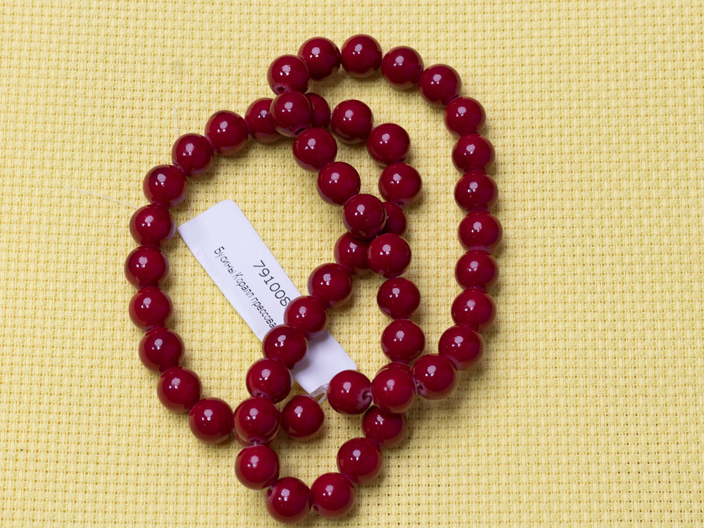 Коралл прессованный. Длина нити 40см. Размер бусин 8мм.