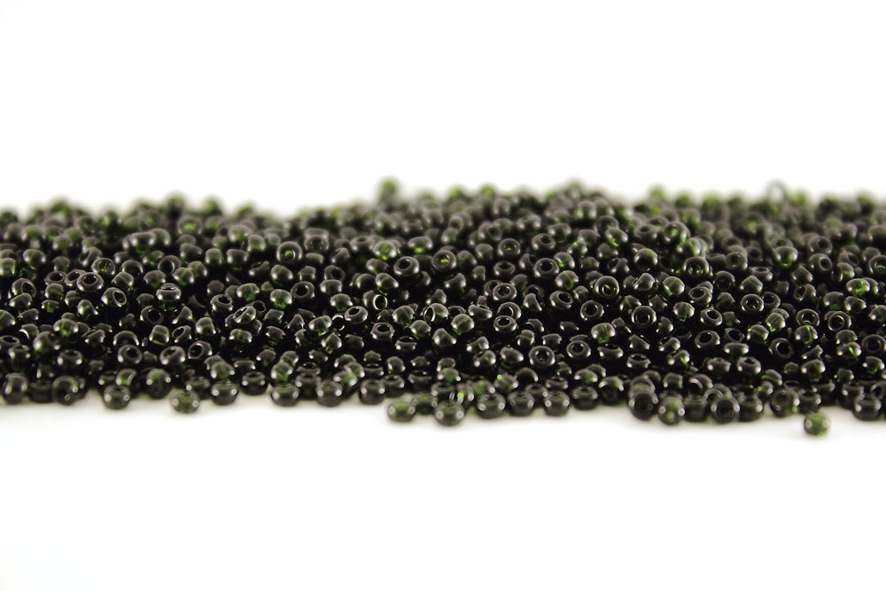 бисер чешский,фирмы "Яблонекс", размер 8\0, цвет темно-зеленый прозрачный, цена за 1 упаковку(50 гр).