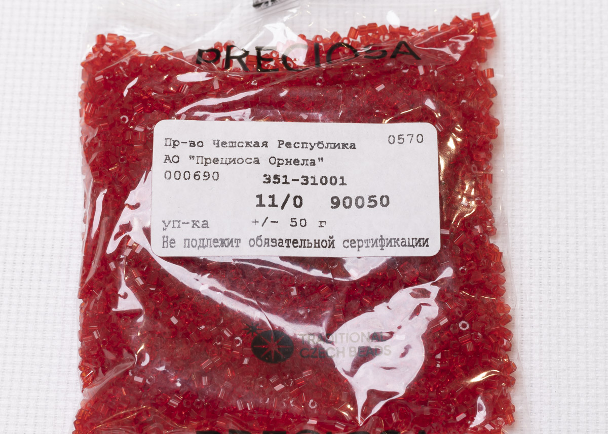 Бисер Чехия рубка 11/0 50г 90050 прозрачный алый