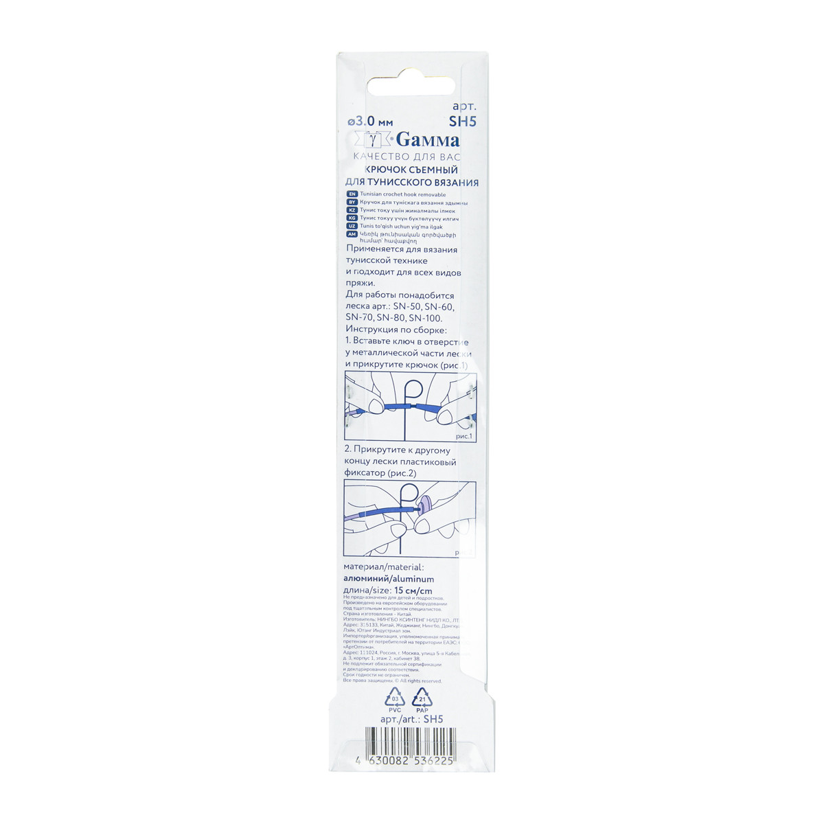 Для вязания " Gamma" SH5 крючок тунисский съемный алюминий d 3. 0 мм 15 см в блистере .